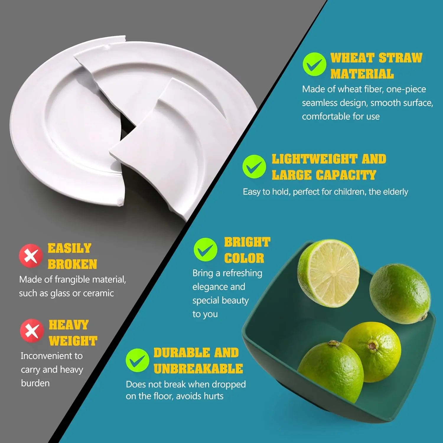 48-Piece Kitchen Plastic Square Dinnerware Set