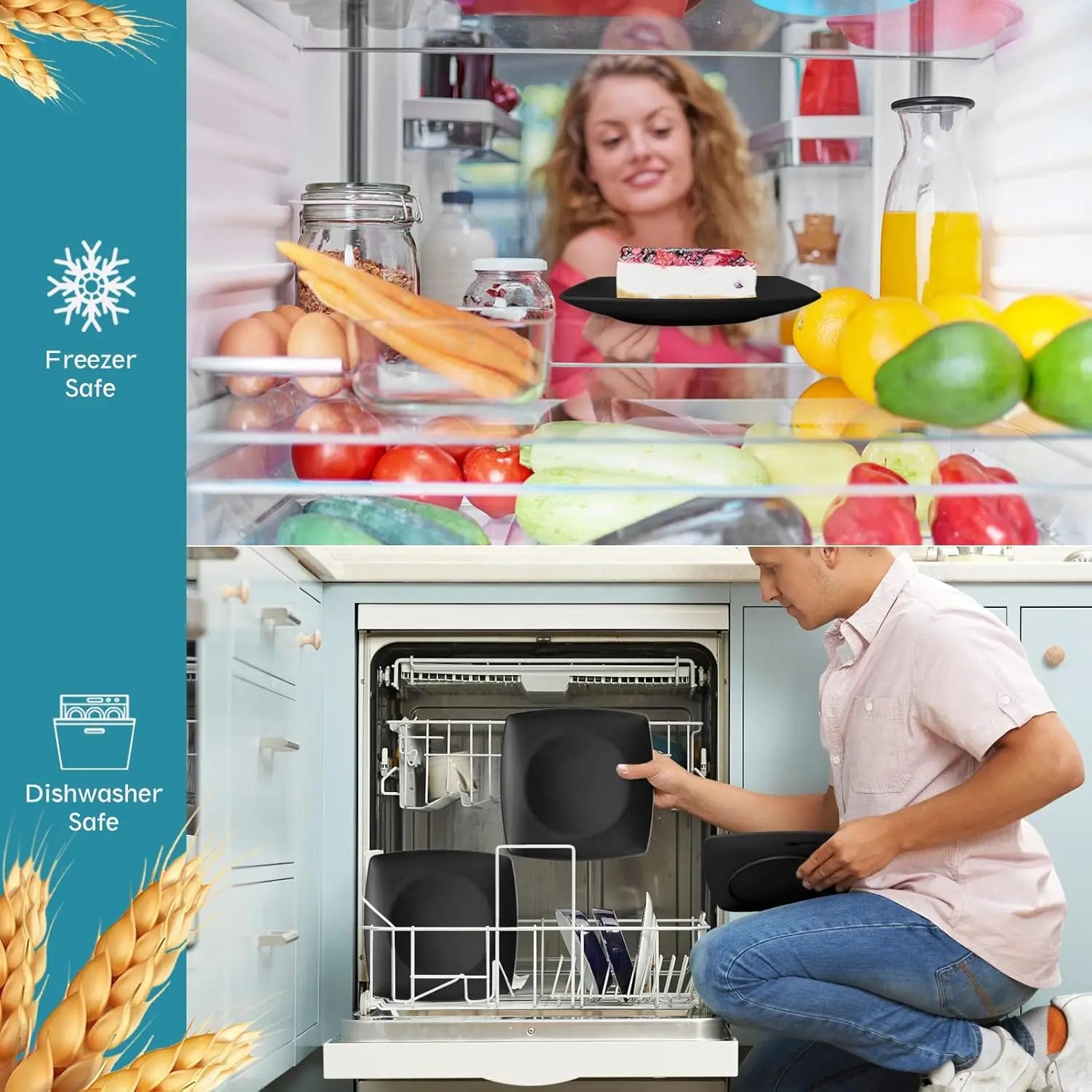 56-piece Flatware Kitchen Plastic Square Dinnerware