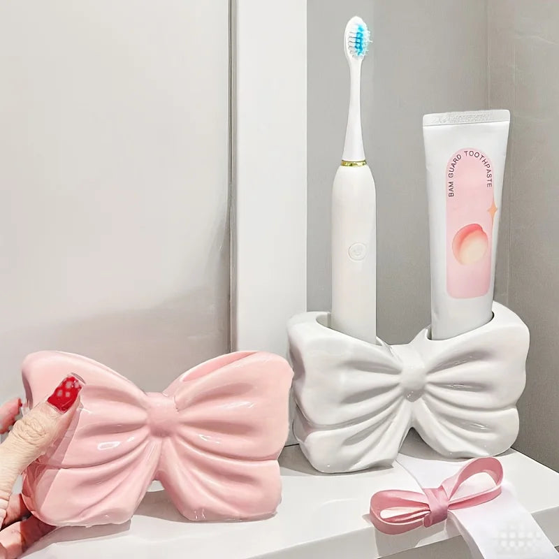 Charming bow ceramic toothbrush holder
